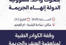 دعت جهات طبية ومحلية إلى تنظيم وقفة للكوادر الطبية لمناهضة العنف والجريمة في أم الفحم، وذلك يوم الجمعة 13 شباط/فبراير…