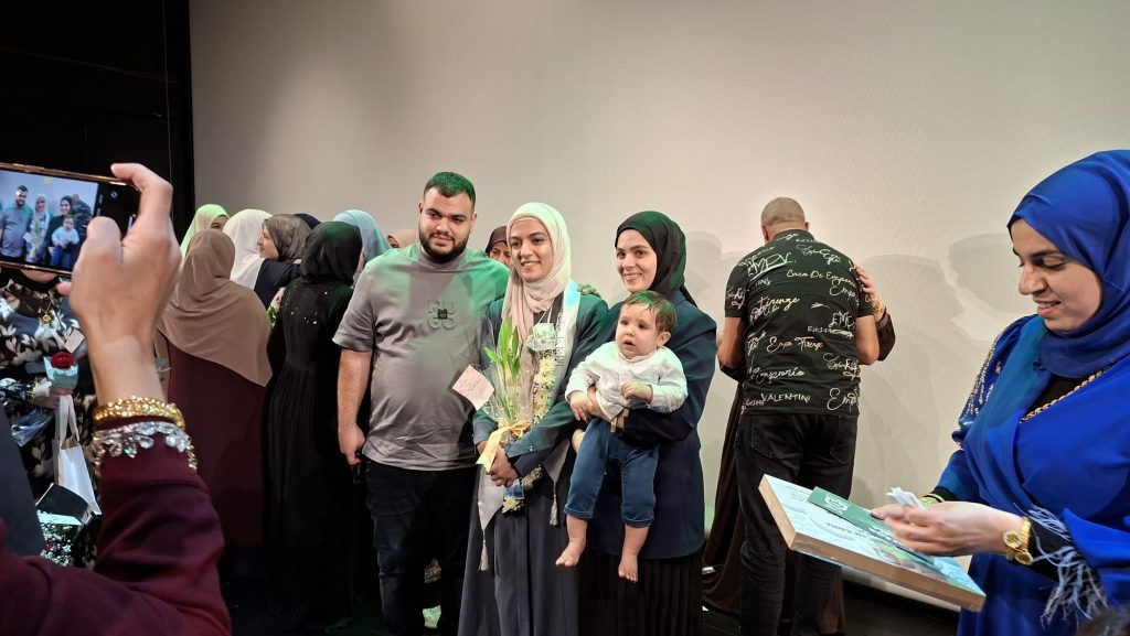 أما الحافظة عائشة محاميد فقد خاطبت الحضور بالقول: “ما أجمل أن تسيري في طريقٍ تتعلمين فيه لغة الله… لغةً تُهذّب الروح وتُحيي القلب. الحمد لله الذي منّ علينا بالحفظ والتثبيت، وجزى والدينا ومربياتنا خير الجزاء.”