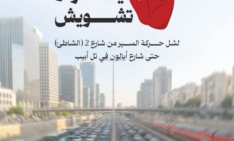 دعت لجنة المتابعة العليا لقضايا الجماهير العربية إلى المشاركة في يوم تشويش، يوم الأحد الموافق 8/2/2026 عند الساعة التاسعة صباحًا، كخطوة احتجاجية في مواجهة تصاعد الجريمة والعنف في المجتمع العربي، وتقاعس الحكومة والشرطة وتواطؤهما.